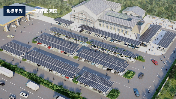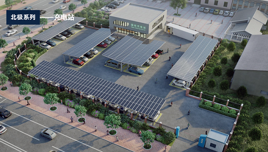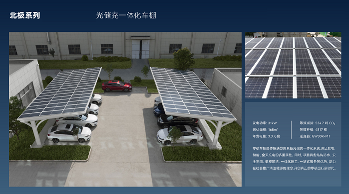 北极系列适配平改坡、车棚等多种建筑物应用场景,双腔构造边框设计保证更坚固的结构形式,装配式安装技术及集成化排水结构,安装便捷,节材省工,具备安全、适用、耐久、经济和环保等综合性能优势。 例如:零碳车棚整体解决方案具备光储充一体化系统,满足发电、储能、全天充电的多重属性。同时,项目具备结构防水、安全牢固、美观简洁、一体化施工、一站式服务等优势,助力在社会推广清洁能源的理念,开创真正的零碳出行新时代。