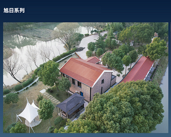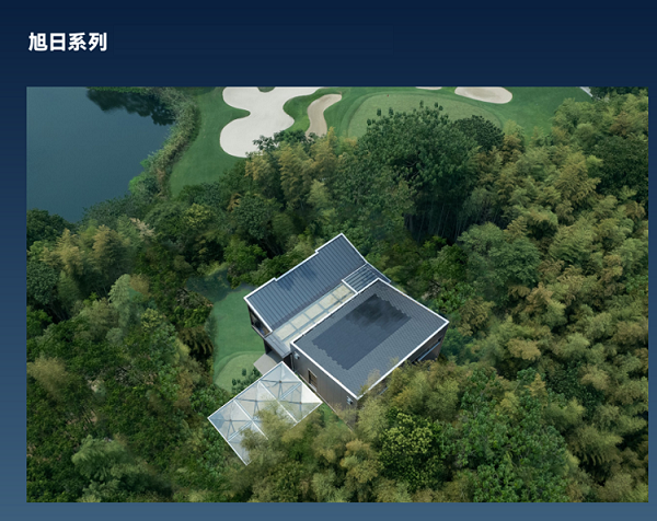 旭日系列:适配各类传统屋面瓦型,钢化双玻结构。屋面通风散热构造与系统密排技术,安装方便,保证屋面结构安全。营造节能舒适体验的同时,更能有效提升屋面利用面积,创造更多发电量。独特的旭日瓦,满足建筑师的设计巧思,与生态园外观保持高度一致性,真正融入自然。